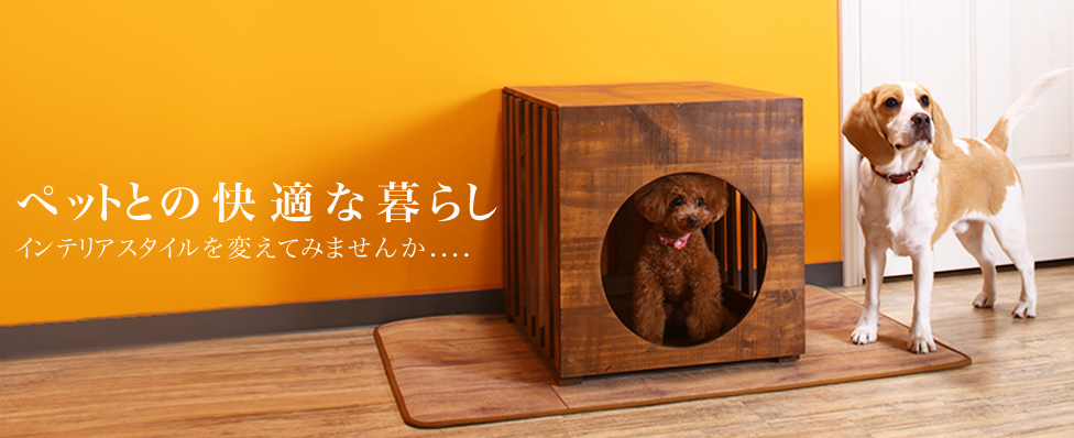・RUシリーズ:本格的木製家具で、ルームコーディネーションを意識した室内犬用の家具。廃材(パレット材)を採用したエコ商品。